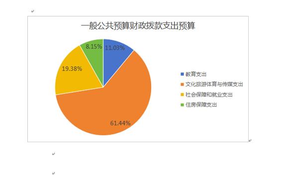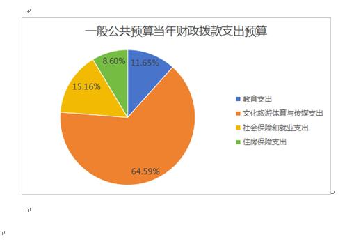 2026年一般公共预算当年拨款686.8万元,主要用于以下方面:教育支出(类)支出80万元,占11.65%;文化旅游体育与传媒支出(类)支出443.63万元,占64.59%;社会保障和就业支出(类)支出104.11万元,占15.16%;住房保障支出(类)支出59.06万元,占8.6%。