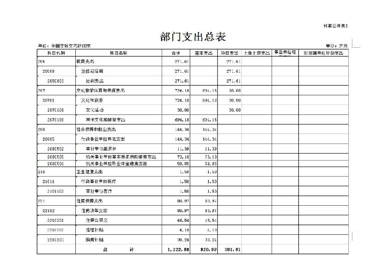 三、部门支出总表