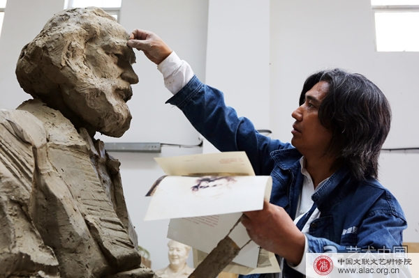 吴为山在创作《伟大的行者-马克思》中 图片来源:艺术中国