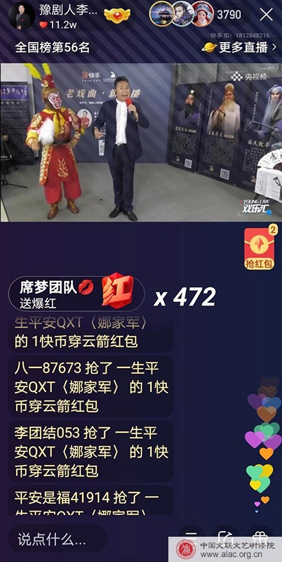 据了解,李树建请进直播间的嘉宾来自全国各地、圈内圈外,有资深老艺术家也有流量明星。截至目前,现场演出的有豫剧名家王善朴、杨华瑞、刘忠河、贾文龙、王希玲、虎美玲、李金枝、申小梅,相声演员范军,豫剧新秀孙敬鹏、杜永真、王献光等;直播间“连麦”了歌唱家刘和刚,演员杜旭东、孙涛,网红二驴、散打哥、球球、“小兵张嘎”等。把这些自带流量的明星、网红请进直播间,通过直播互动,老艺术家在一起PK,戏迷和徒弟PK,网红粉丝互点关注等手段,受到年轻人欢迎,通过各自拥有的粉丝进行行业互相渗透,加深了跨界融合,宣传效果非常好。