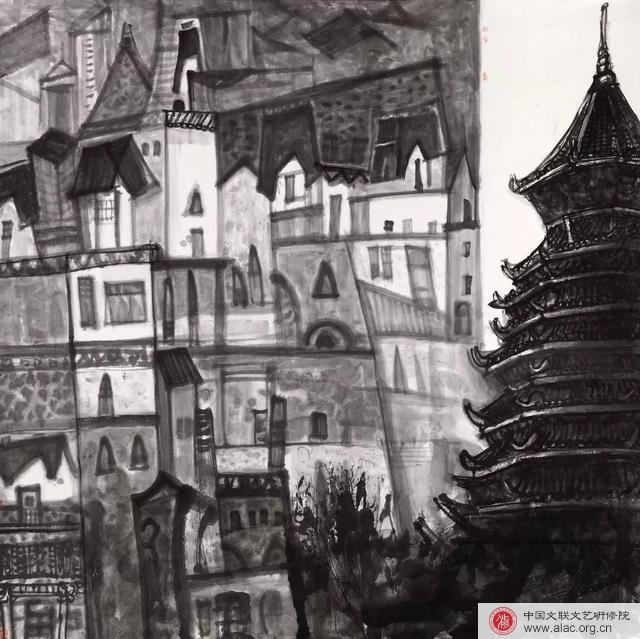 《鼓楼·城楼》 潘闻丞 200cm×200cm 中国画