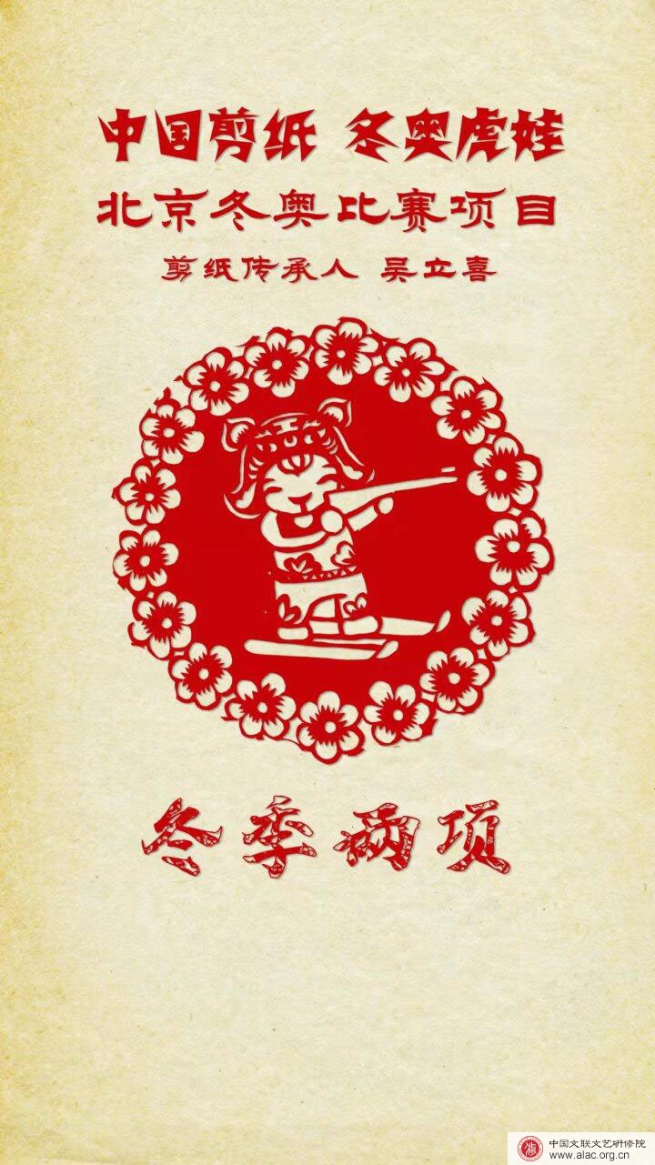 “一起向未来!”在第24届冬季奥运会举办之际,中国文联文艺研修院新文艺群体三期校友、齐齐哈尔市非遗项目孟氏剪纸传承人吴立喜用一个月的时间创作了系列剪纸作品《中国梦 冬奥梦》,以中国传统文化元素为背景,将中华优秀传统文化与冰雪运动元素融合起来,“祝愿北京冬奥会和冬残奥会顺利举办,祝更多人在冬奥舞台上梦想成真!”