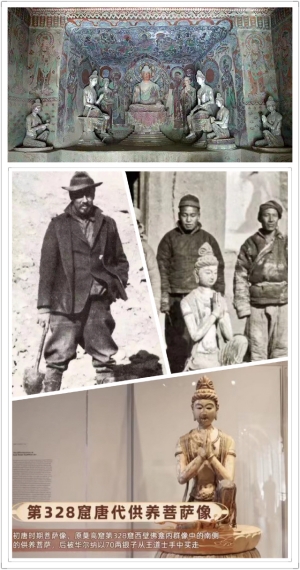 我和创作团队在前期做了大量的采风工作,收集众多文物信息。随着对故事的深度挖掘,我感到文物不仅是历史文化的载体,也是中国历史文化的再现和见证,承载着一个国家一个民族深厚的历史脉络。岁月悠悠,这些文物,向我们诉说着往日的故事,诉说民族的历史记忆。因此,《乘风》以“文物回归”这一主题为支点,以敦煌莫高窟328窟正壁龛左侧一尊唐代供养菩萨佛塑像流失海外的真实故事为依据(第328窟西壁佛龛内的雕塑群像均为唐代原作,而其中南侧一尊供养菩萨于1924年被美国人华尔纳盗走,现藏哈佛大学赛克勒博物馆,这尊佛塑已阔别故土近百年),我们力图展开一场心灵的回归之旅。