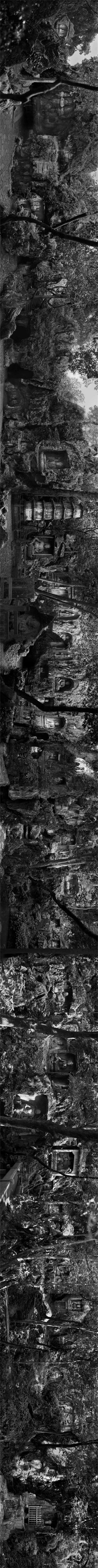 突破,始于对“形式”的创新。我最初延续大学时期的“单幅拼贴立轴”技法,却发现无法展现造像与山体的空间关联——读者看不到造像在冷泉溪畔的具体位置,也感受不到“佛国山”的整体气韵。一次偶然的傍晚,我在冷泉溪畔凝望造像,忽生灵感:为何不打破相机“一点透视”的局限,用中国传统绘画“三远法”重构画面?于是,我尝试以“游走的移动构图”拍摄,从理公塔向两侧延伸拼贴,耗时近六个月完成首幅20米长卷《灵鹫飞来》。这幅作品里,阴天与晴天的光景交融,冷泉溪的树木作“叙事分割”,观者可自左至右“游走”其间,仿佛置身真实山峰——这种“打破时空限制”的形式,恰与古人“以山为卷”的智慧不谋而合。