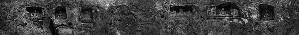 在完成5幅长卷之后,我又在思考展览形式,根据以往的陆续展出效果来看,长卷的形式是挺不错,同时引起了许多绘画界的朋友关注,但在我看来似乎还不太足够,首先长卷作品高度上就有一定的局限性,长卷展出对空间也有较大的要求。冥思苦想之间,我想到我们中国传统展览方式中有一种接裱的形式,于是我又拍摄了一批立轴作品,也是对于之前飞来峰摩崖石刻没有拍摄完全的一个补充。这些新拍摄的立轴作品,既可以单幅展出,也可以根据展厅空间进行组合展出。