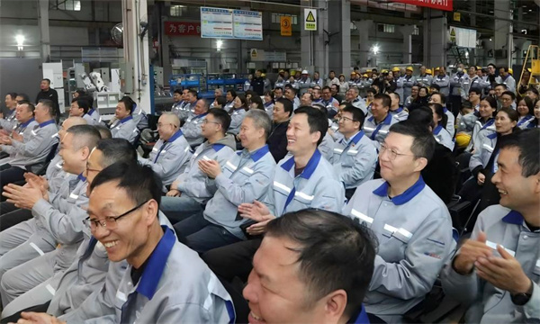 演出间隙,陈龙、杨建军等书画家为企业送上了三幅饱含深意的作品:一幅以苍劲书法写下“匠心制造 树立标杆”,呼应企业在印刷机械领域精益求精的追求;一幅书就“国际领先”四个大字,精准契合其技术攻关、对标世界的发展目标;还有一幅水墨山水画,以层峦叠嶂的意境隐喻企业勇攀高峰的格局。随后,华山戏法《三仙归洞》在职工们的近距离围观下上演,道具的奇妙变幻让车间里满是惊叹;秦腔《三滴血》选段刚唱完,职工们便齐声喊“再来一段”,演员随即加唱了《周仁回府》选段,熟悉的唱腔让现场更添热闹;二重唱《复兴的力量》激昂旋律响起时,更有人不自觉地打起了节拍。最终,歌伴舞《乘风破浪再出发》以蓬勃气势收尾,职工们的掌声与欢呼声,在车间里久久回荡。