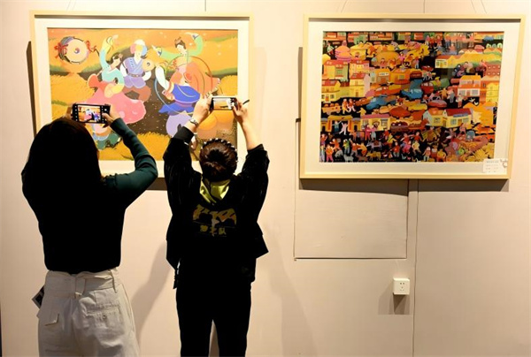 据悉,中国文联持续开展“与人民同行”“艺润边疆”等文艺志愿服务活动,黑龙江省文联以“服务基层、激活特色”为理念,主办“中国当代版画双年展”,实现了举办国家级展览“从无到有”的突破,更推动13个市(地)文艺志愿服务组织全覆盖。绥化市委宣传部将文艺工作纳入全市宣传思想文化全局,以“植根黑土、服务振兴”为宗旨开展多项文艺实践活动。以此次展览为例,绥化作品聚焦黑土地,《种豆得豆》《扭起秧歌庆丰年》等作品均以描绘丰收场景为主,《大集还是那个大集》《我的家在东北》则展现了民俗记忆。而阿勒泰作品则尽显草原风情,《收获》《远方的客人请你留下来》《驼铃乐舞伴歌行》勾勒出边疆生活的鲜活图景。