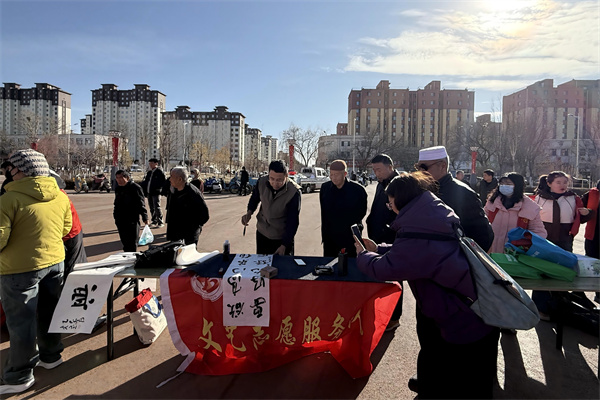志愿服务“赶大集”,笔墨浸润百姓家。12月5日上午,吴忠市文联积极参与市委社会工作部主办的“吴忠市‘12·5’国际志愿者日志愿服务赶大集主题活动”。活动现场,书法志愿者们挥毫泼墨,围绕孝亲敬老、勤俭持家、廉洁修身等主题,为群众现场创作并赠送家风家训书法作品。一幅幅承载着中华优秀传统文化与新时代文明理念的墨宝,既营造了浓厚的文化氛围,更在笔墨流转间引导群众树立优良家风,弘扬文明新韵。