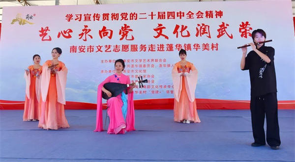 为深入学习宣传贯彻党的二十届四中全会精神,以党建引领乡村文化振兴,推动优质文化资源下沉基层、滋养乡土,近日,由福建省泉州市南安市文联、南安市蓬华镇党委、镇政府联合主办的“艺心永向党 文化润武荣”南安市文化志愿服务活动,在蓬华镇华美村仰华金秋园顺利上演,为当地群众奉献了一场贴近生活、温暖人心的精彩演出。