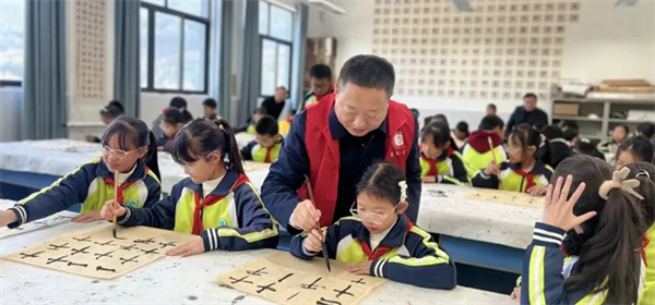 在通江县,红叶文艺志愿服务队先后走进通江县实验小学、通江县第六完全小学、铁佛小学等多所学校,开展“书法进校园”培训活动。志愿者们针对不同学段学生,设计差异化的教学内容:低年级学生从“三个一”坐姿握笔口诀学起,通过趣味动画掌握基本笔画;高年级学生则学习字体结构,并结合通江地区红色诗词进行书写练习。