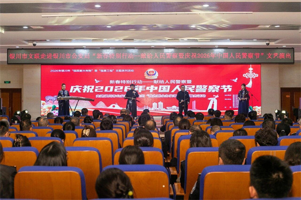 为庆祝第六个中国人民警察节,向人民警察送上节日问候,用文艺的方式礼赞人民警察的崇高风范,1月9日上午,由宁夏回族自治区银川市文联、银川市公安局、银川艺术剧院主办,银川市文艺志愿者协会、银川市音乐家协会、银川市曲艺家协会、银川市杂技家协会、银川市朗诵艺术家协会、银川公安文联等共同承办的“新春特别行动——献给人民警察暨庆祝2026年中国人民警察节”走进银川市公安局“我为群众办实事”文艺演出志愿服务活动顺利开展。