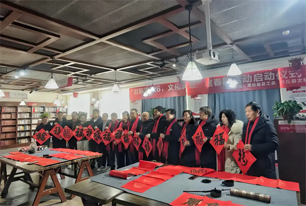 灵丘县文联联合县总工会,在新华书店启动“启航2026 ‘文化灵丘’送春联活动”。县人大常委会副主任、总工会主席吕海明出席仪式并致辞,书法家们以楷书端庄、行书飘逸、隶书古朴、草书奔放的多样书体,精心创作春联与“福”字,为全县职工送上饱含新春暖意的“文化年货”。活动以文化为纽带,用传统文化浸润人心,丰富了职工的精神文化生活。