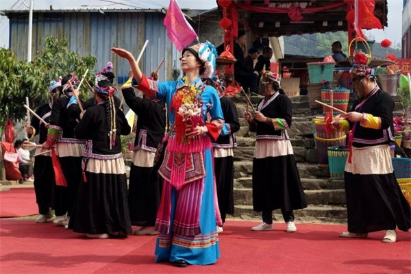 在田林县潞城瑶族乡弄光村“壮族祭瑶娘”民俗活动现场,百色市曲协主席吴桂英身着蓝靛瑶服饰,扮演瑶娘,将文艺志愿服务与非遗民俗深度融合,生动诠释了“瑶娘”冲破族规、造福乡梓的精神内核,并融合壮瑶歌舞表演,让现场群众在感受民俗魅力的同时,进一步铸牢中华民族共同体意识。