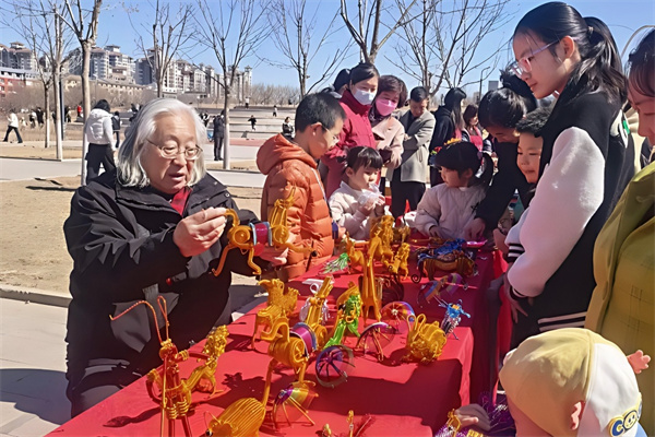 活动现场,民间文艺家们带来了精心创作的手工艺品:色彩斑斓的金属丝编作品栩栩如生,孔雀、骏马、昆虫等造型灵动精巧,引得孩子们驻足围观、好奇询问;巧夺天工的钩针编织作品琳琅满目,可爱的玩偶、精致的杯垫、盛放的布艺花朵,每一件都饱含着手艺人的巧思与温度,让市民在触摸与观赏中感受指尖上的非遗魅力。