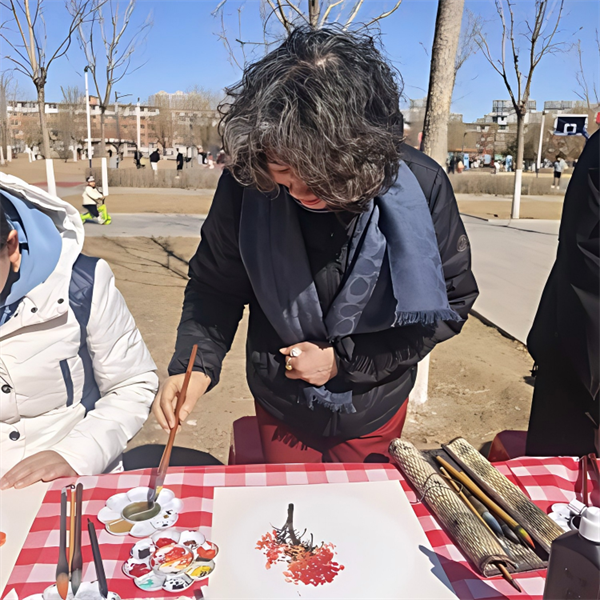 另一边,美术家协会的志愿者们挥毫泼墨,以笔墨丹青绘就春日盛景。金鱼戏莲、秋菊傲霜等写意画作跃然纸上,既有传统国画的韵味,又饱含对生活的美好祝愿。志愿者们还现场为市民讲解书画知识,手把手指导绘画技巧,让大家在沉浸式体验中感受中华传统绘画艺术的博大精深。