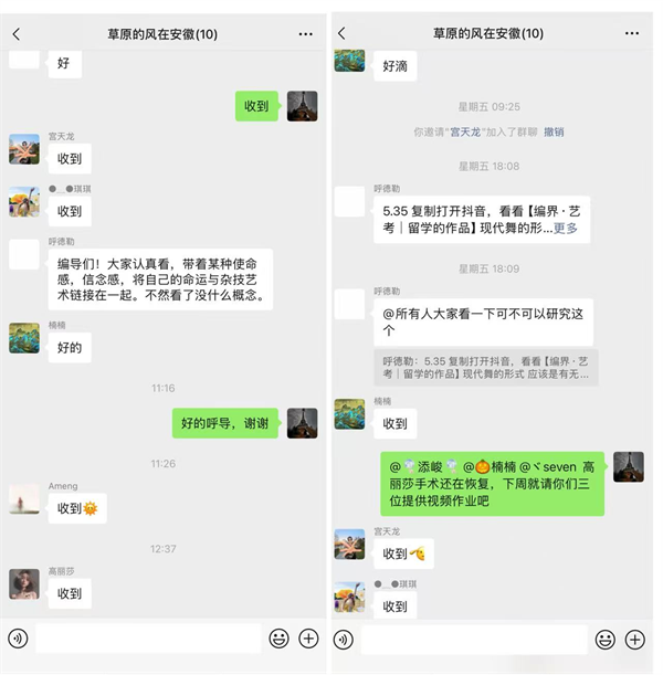 我与舞蹈组的呼德勒导演达成了合作默契,建立了编创沟通工作群“草原的风在安徽”。呼德勒指导我申报的演出项目编导工作,而我则作为呼德勒的文案编撰,协助他今后项目的文本工作。我们互为支撑,在各自的项目中交叉协助发挥作用。通过碰撞交融,曾经固化的“边界”已然成为了一望无际“诗意平原”。