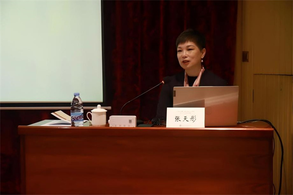 10月18日下午,张天彤以《民歌——流淌在人民生活中永恒的旋律》为题作专题讲座。授课中,她主要围绕民歌概念及历史发展、民歌类型划分及特点、民歌演唱风格形成要素及分析、民歌保护传承与发展等四个方面,为学员们深入浅出地阐释了民歌艺术的独特魅力。她首先对中国传统民歌的概念及历史发展做了清晰梳理,并着重强调了民歌的口头性和集体性、地域性和民族性、即兴性和流变性,以及真实性和多功能性等四个特点。谈及民歌演唱风格形成要素问题,她提出民歌使用的语言和润腔这两个重要的考量角度,语言即民族的语言和地方方言,润腔则包括技术润腔、肢体润腔、感情润腔等三种形式。最后,关于民歌的传承与发展问题,张天彤表示,民歌是流淌在人民生活中永恒不灭的旋律,发扬民歌是一个时代命题,要注重培根育魂、守正创新。