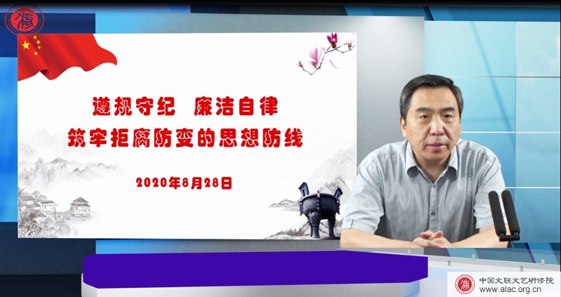 8月28日上午,中国文联年轻干部(初任)线上培训班邀请了中国文联机关党委常务副书记刘国强,以“遵规守纪 廉洁自律 筑牢拒腐防变的思想防线” 为主题,对学员们进行了党风廉政教育,未雨绸缪,帮助学员系紧“风纪扣”。