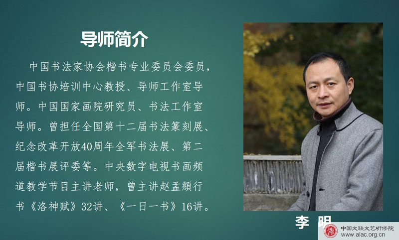 9月2日上午,在中国文联文艺研修院直播授课教室中,中国文联文艺研修院中青八期校友、中国书法家协会楷书委员会委员、中国国家画院研究员李明为全国市县文联基层文艺骨干班学员作了题为《关于书法学习的三个结合》的专题直播讲座。