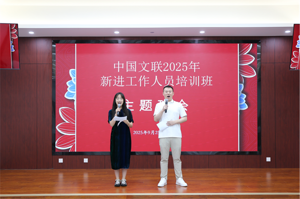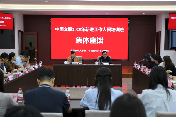9月25日上午,中国文联2025年新进工作人员培训班集体座谈会召开。中国文联人事部主任张晓辉与新进工作人员座谈交流,座谈会由中国文联文艺研修院副院长程翔宇主持。