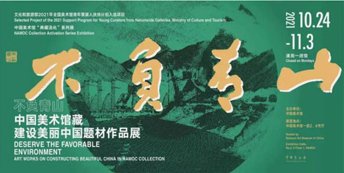 《不负青山——中国美术馆藏建设美丽中国题材作品展》呈现了新中国成立以来,在党的领导下,在焦裕禄、杨善洲、王有德等一代代党员干部的带领下,广大人民群众开展的一系列垦荒、改造盐碱地、植树造林、治沙、建设水利工程的生动画面。展览中的经典美术作品,充分展现了建设美丽中国的历史画卷中承载的一代代艰苦奋斗、自强不息的中国人民的豪情壮志。